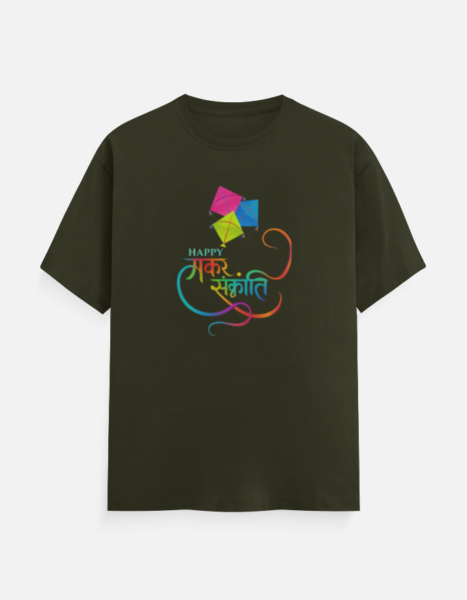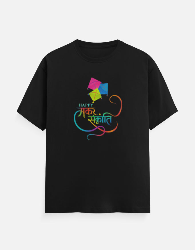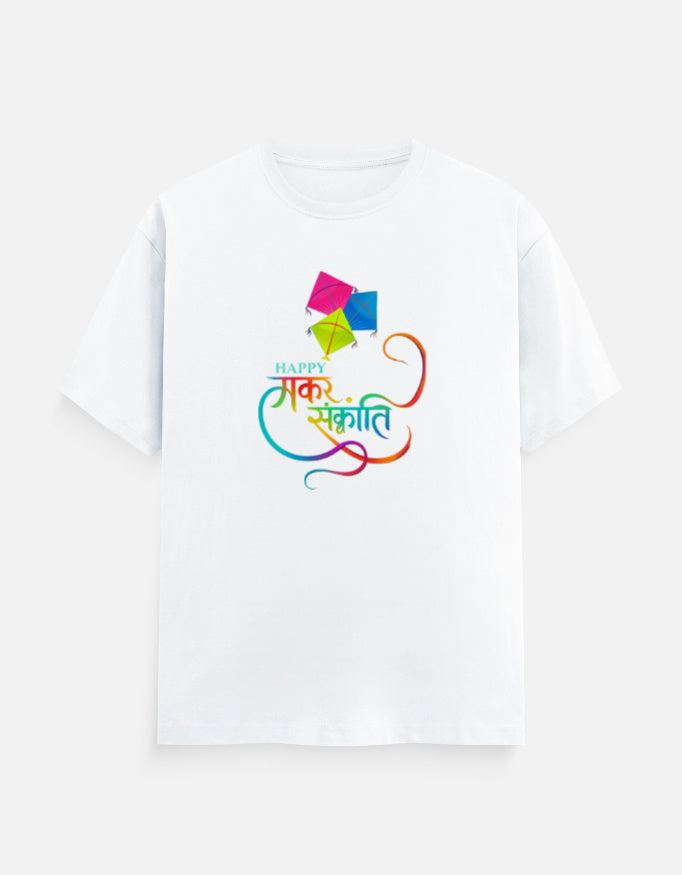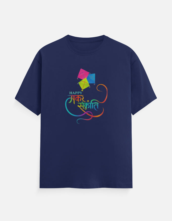 Happy Makar Sankranti Text And Kite - Unisex Classic Crew T-Shirt