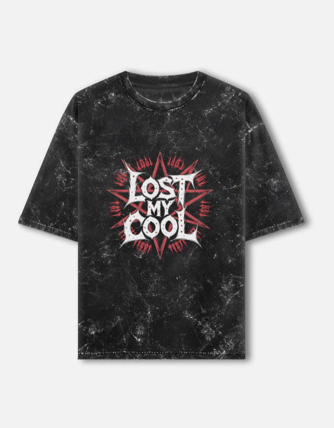 Make a bold statement with this unique acid-washed oversized tee featuring an edgy 'Lost My Cool' graphic. Perfect for those who embrace individuality and aren't afraid to stand out from the crowd.