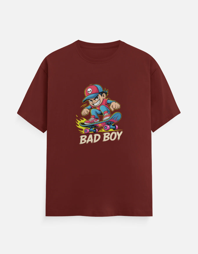 Bad Boy Graphic - Unisex Classic Crew T-Shirt in maroon - front view