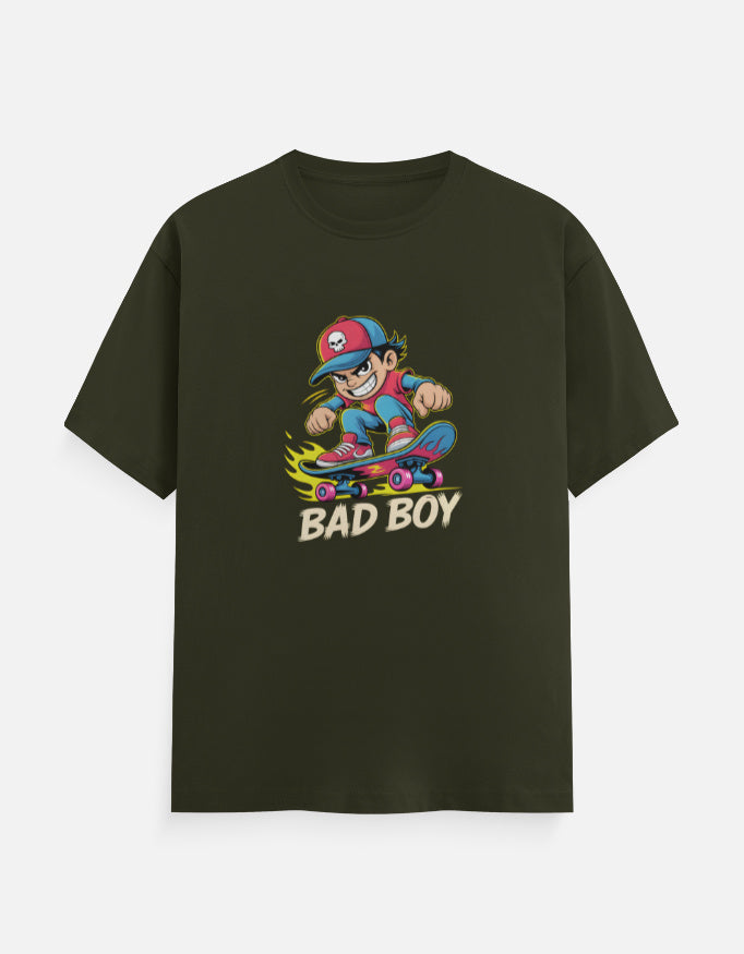 Bad Boy Graphic - Unisex Classic Crew T-Shirt in olive green - front view