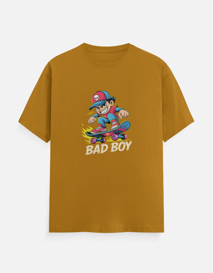 Bad Boy Graphic - Unisex Classic Crew T-Shirt in mustard yellow - front view